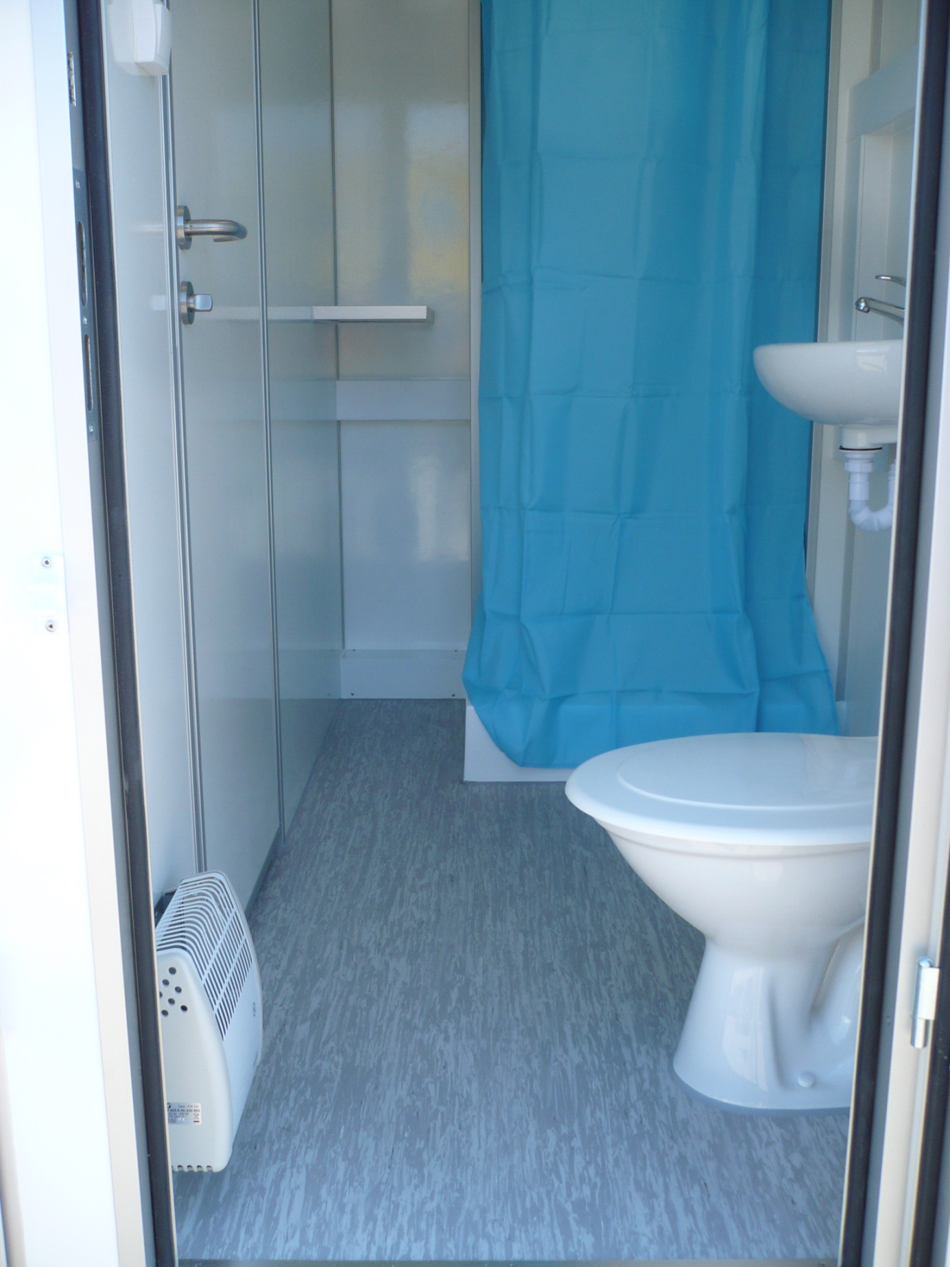Elektricky vytápěná mobilní obytná buňka pro dvě osoby – vybavená kuchyňkou s příslušenstvím (myčka, odsavač, varná deska, lednice, kávovar, 19" TV), dvěma ložnicemi s postelemi, toaletou, sprchou a umyvadlem včetně zrcadla.