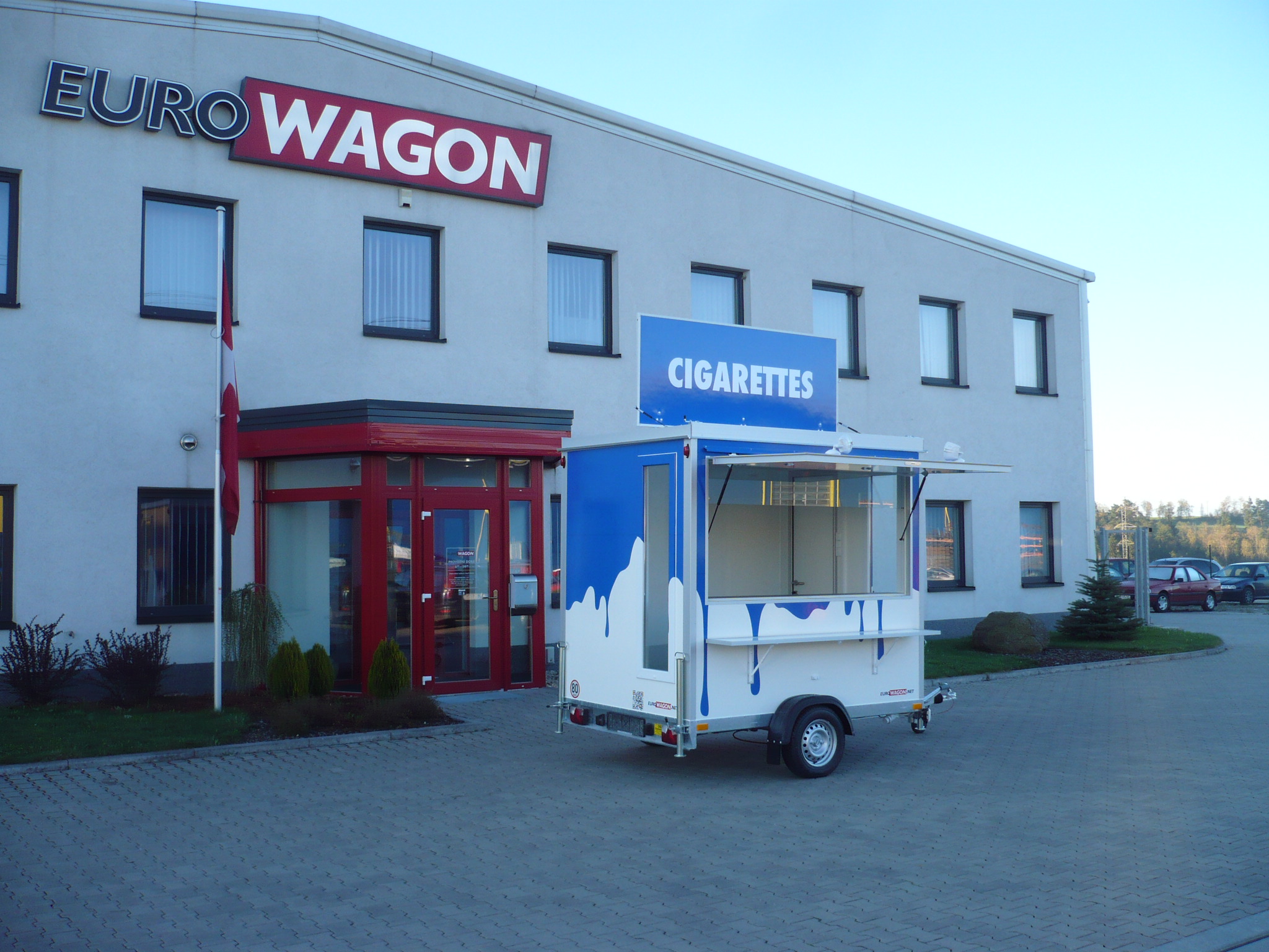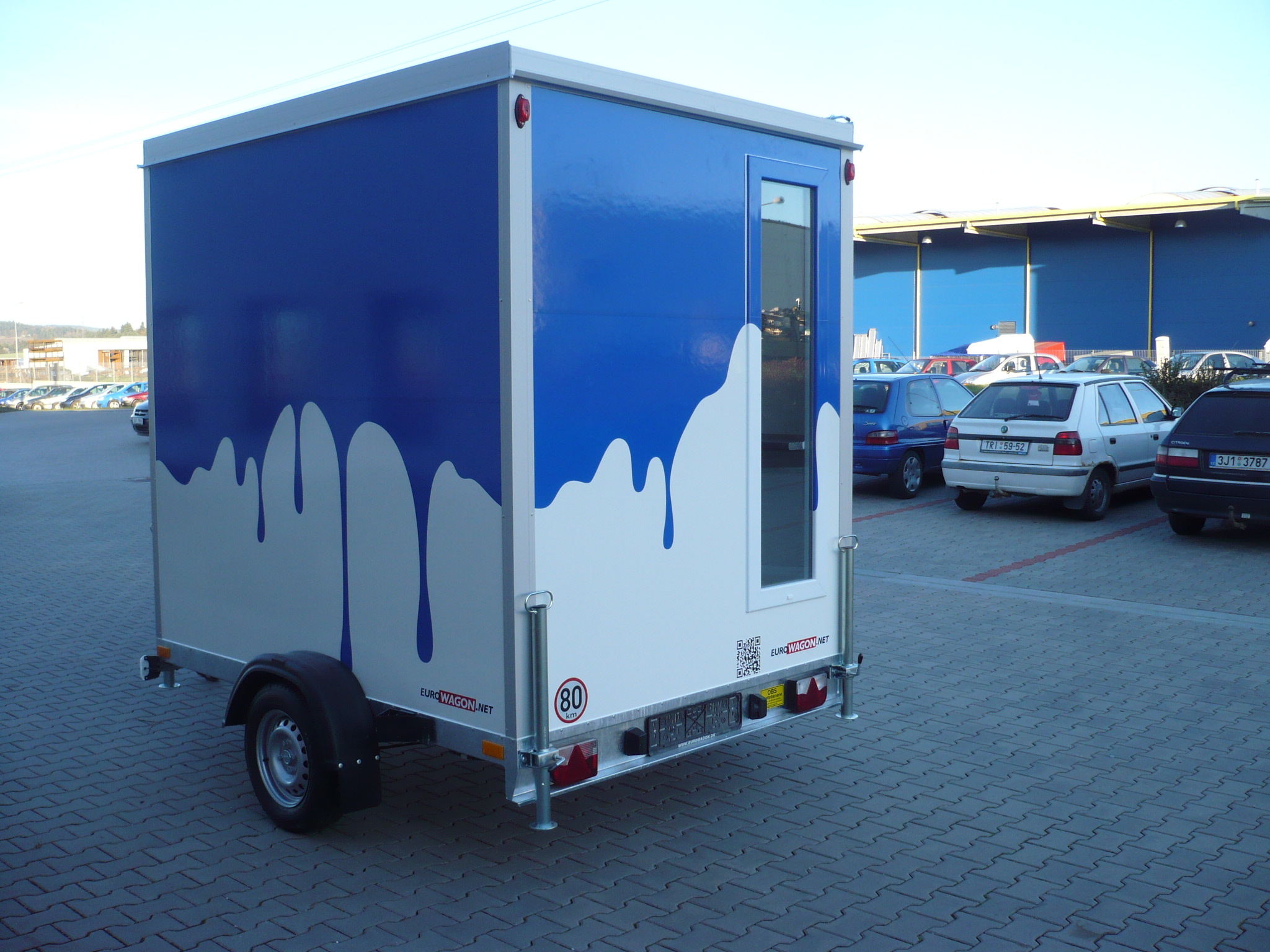 Sales trailer equipped with one side flap.