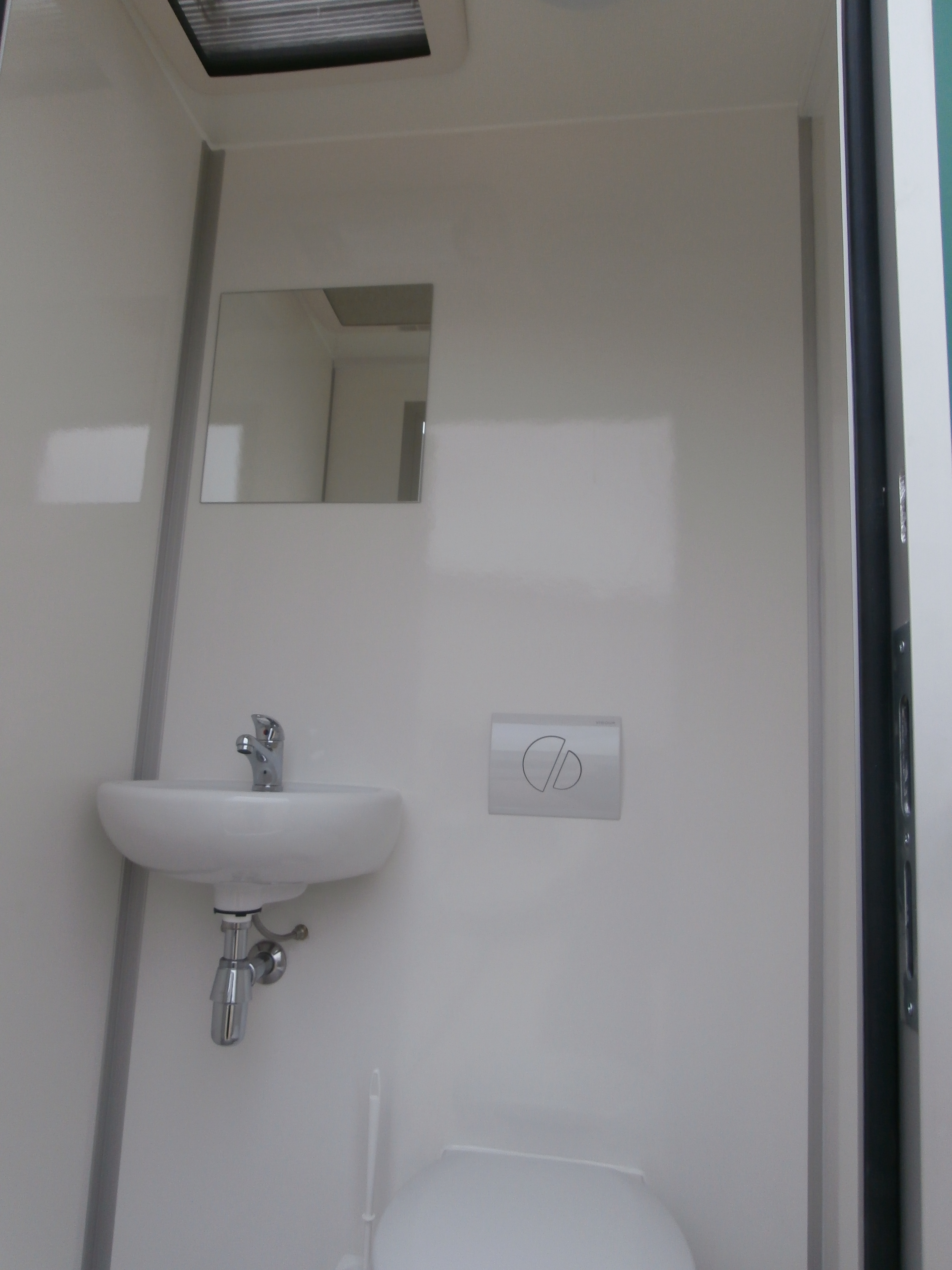 Elektrisch beheizte Wagen für vier Personen, ausgestattet mit Büro/Speiseraum mit Kühlschrank, Badezimmer mit Toilette, Waschbecken mit Spiegel.