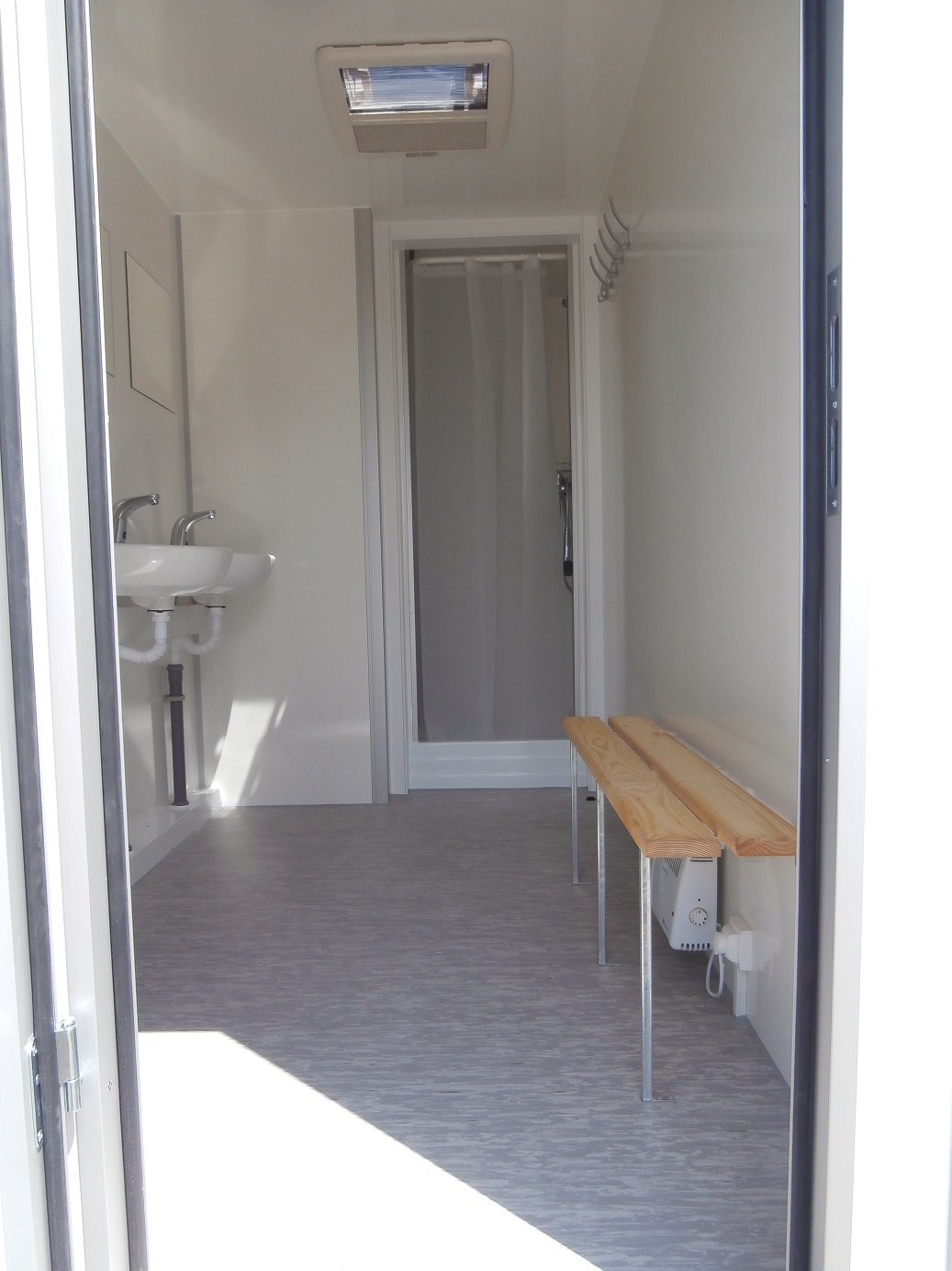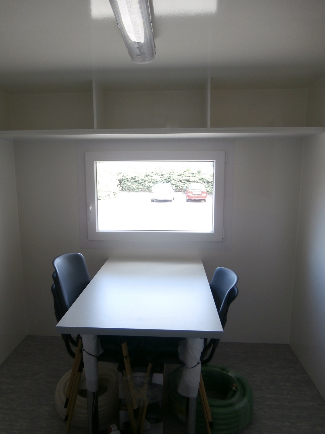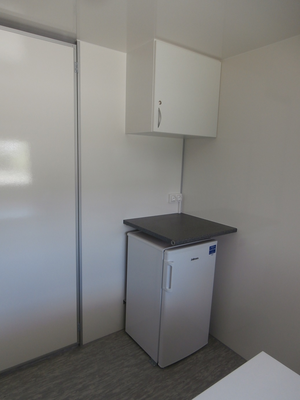 | Podlaha | Gulv 60 mm gulvsandwichpanel med galvaniseret og lakeret stål på siderne og en kerne af PUR skum og ovenpå 2 mm slidstærkt vinyl, der fås i forskellige designs. |