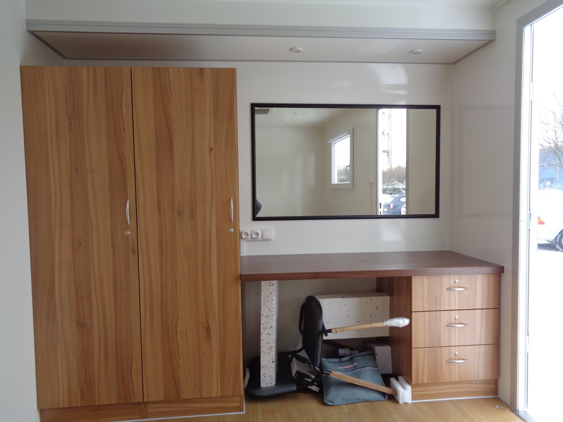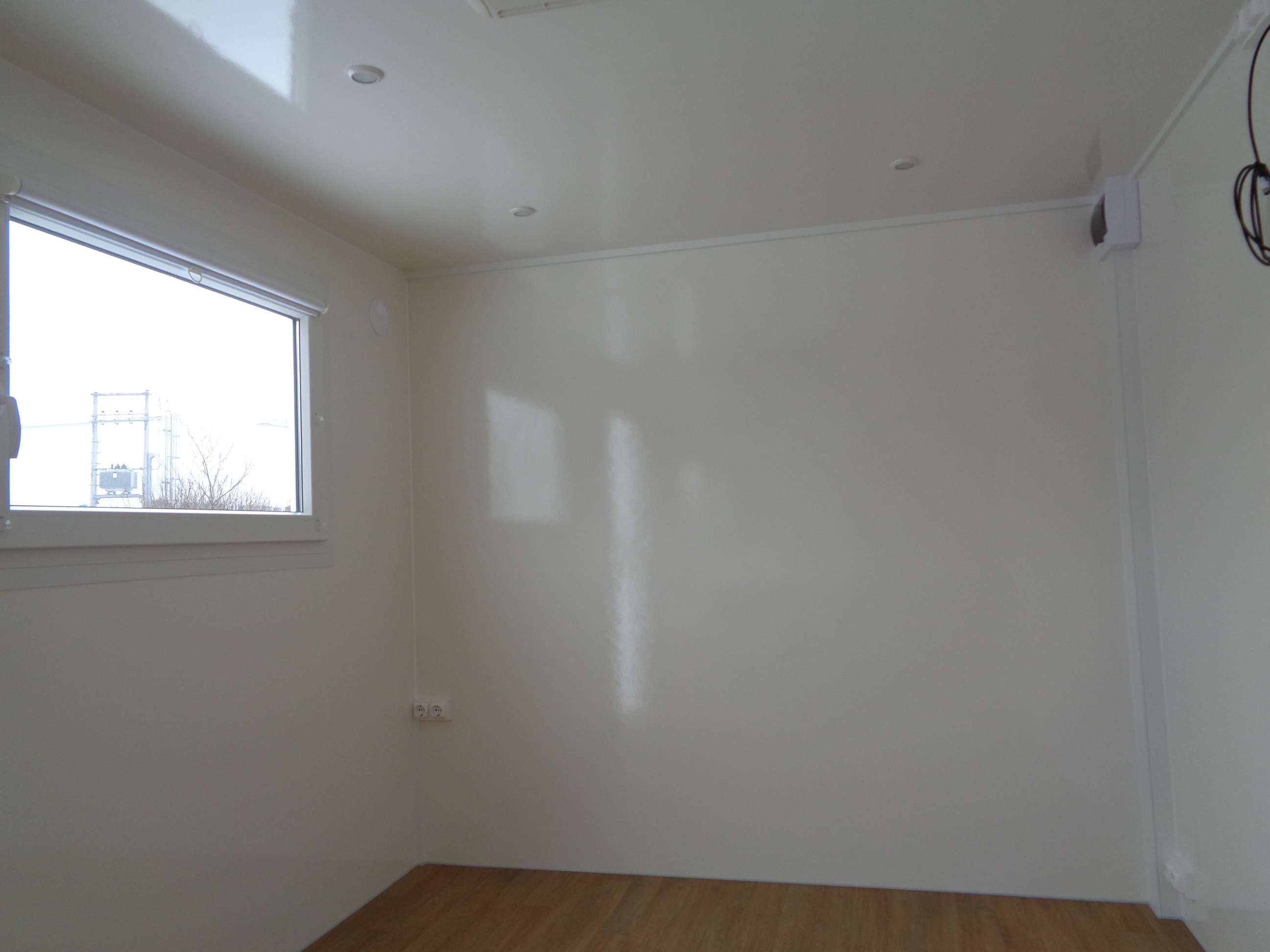 | Podlaha | 60 mm gulvsandwichpanel med galvaniseret og lakeret stål på siderne og en kerne af PUR skum og ovenpå 2 mm slidstærkt vinyl, der fås i forskellige designs |