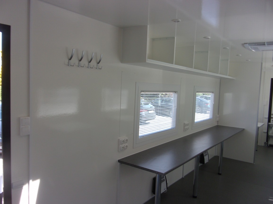 | Podlaha | 60 mm gulvsandwichpanel med galvaniseret og lakeret stål på siderne og en kerne af PUR skum og ovenpå 2 mm slidstærkt vinyl, der fås i forskellige designs |