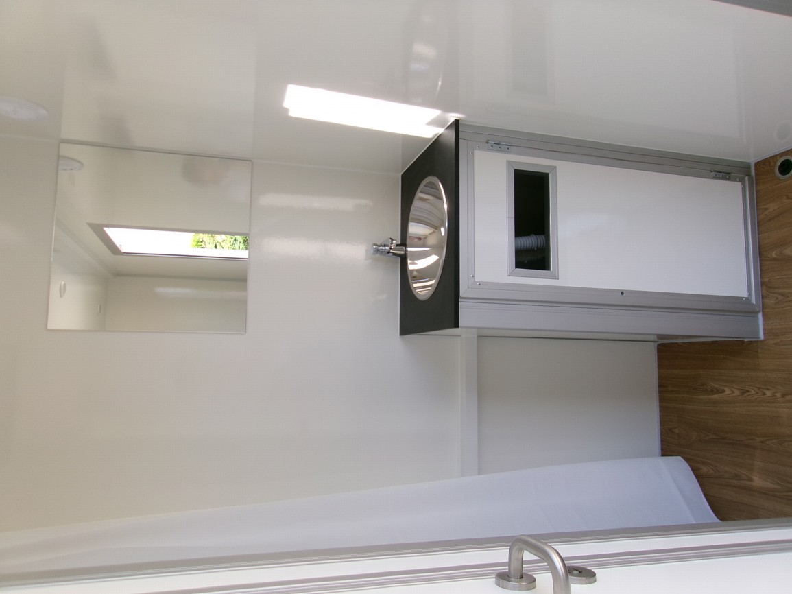 - Toilet-/ badevogn med 2 afdelinger, hver med 1 x brusebad, 2 x vandskyllende toiletter samt håndvask.