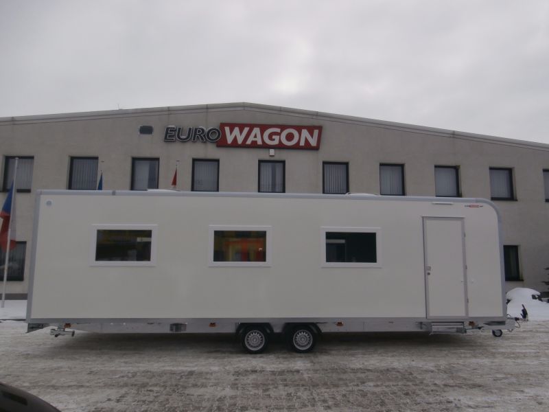 Filmbrancheanhänger - Typ 2470-89. Mobilcafé mit dem angenehmen Interieur und grosser Plätzekapazität. Austattungsteile: Tische, gepolsterte Bänkchen, Steckdosen bei jedem Tisch, Fensterrolladen.