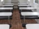 Mobilní kavárna se stolečky a polstrovanými lavičkami + jednoduchý kuchyňský kout. Stahovací rolety, elektrické vytápění 750W.